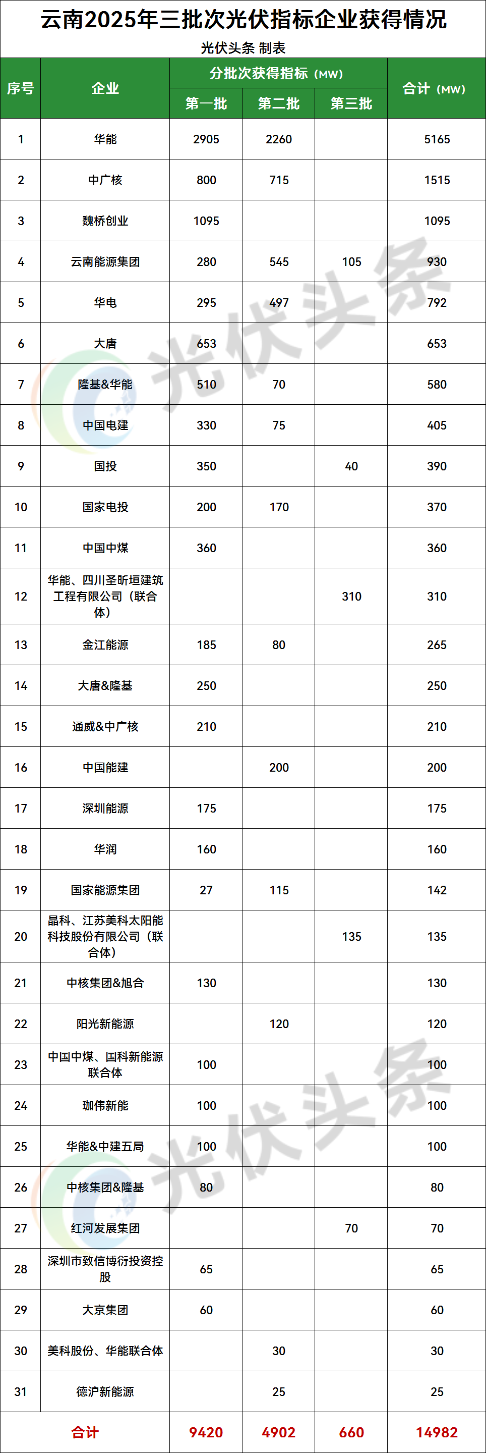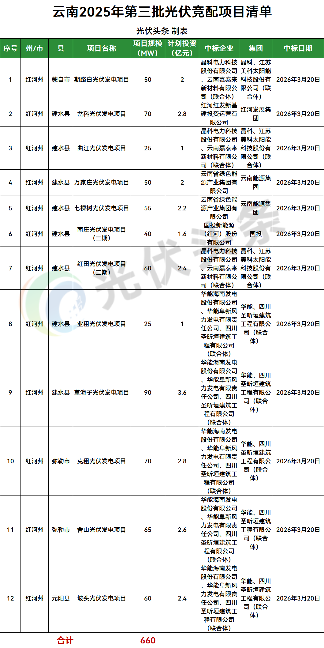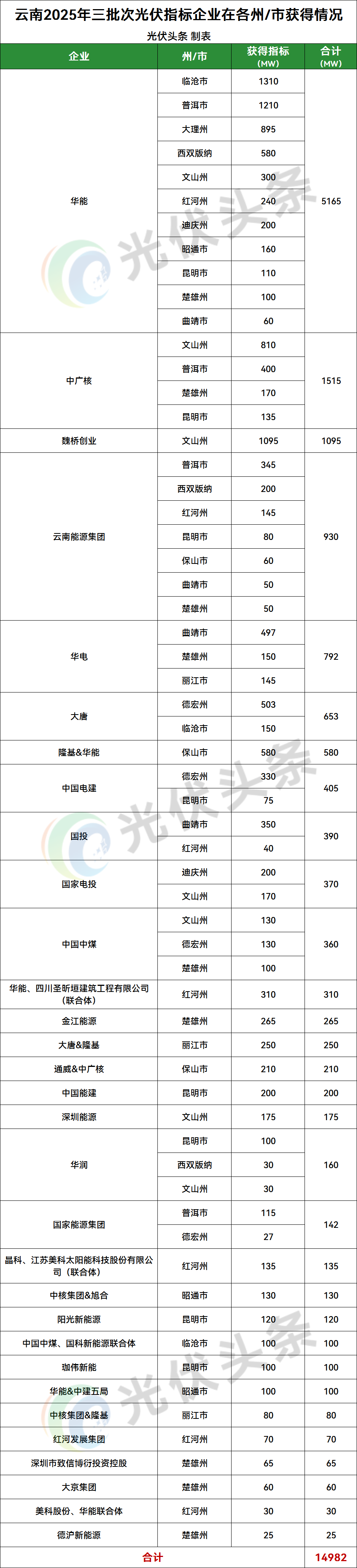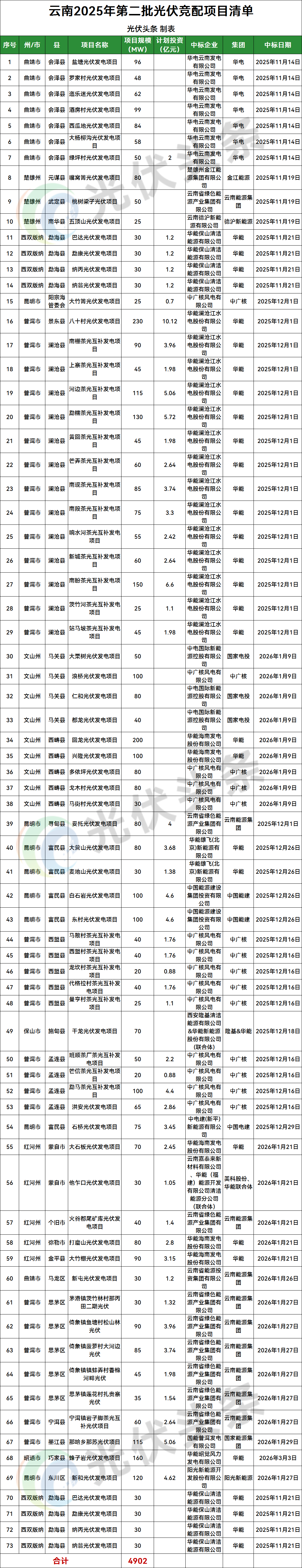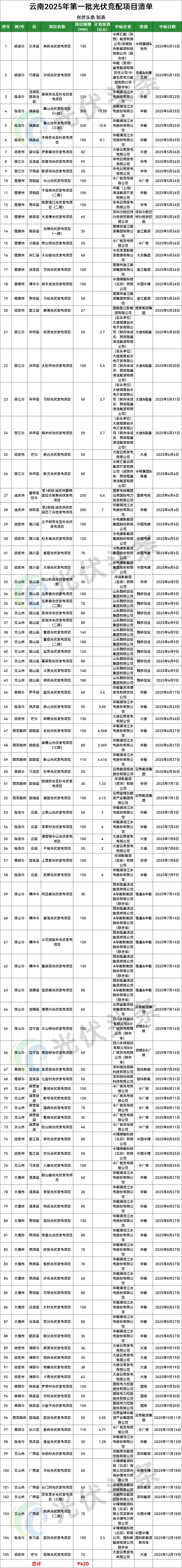 15GW云南光伏項(xiàng)目完成競配:華能、中廣核、魏橋創(chuàng)業(yè)領(lǐng)銜!