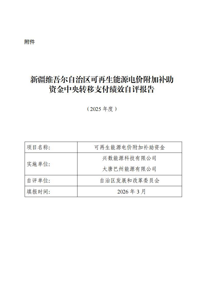 附件:新疆維吾爾自治區(qū)可再生能源電價(jià)附加補(bǔ)助資金中央轉(zhuǎn)移支付2025年度績(jī)效自評(píng)報(bào)告.pdf