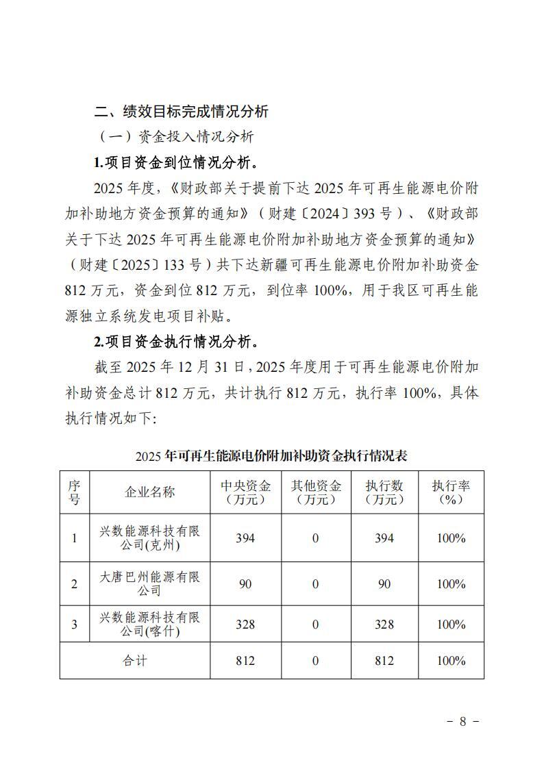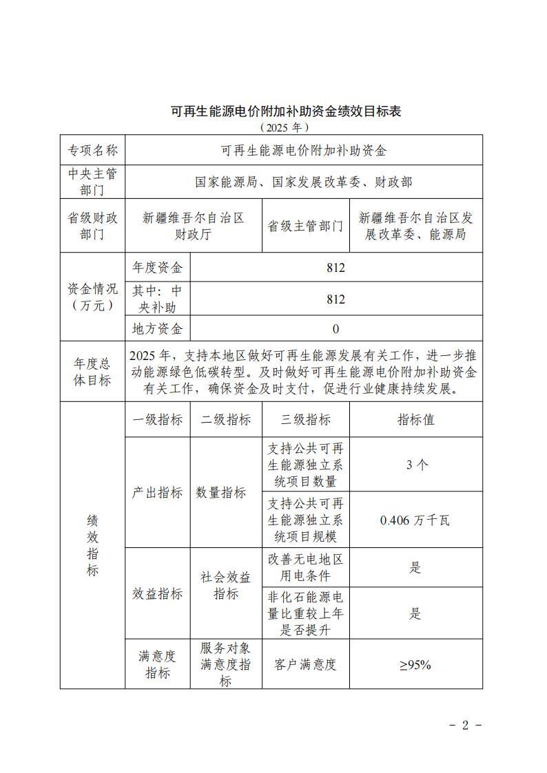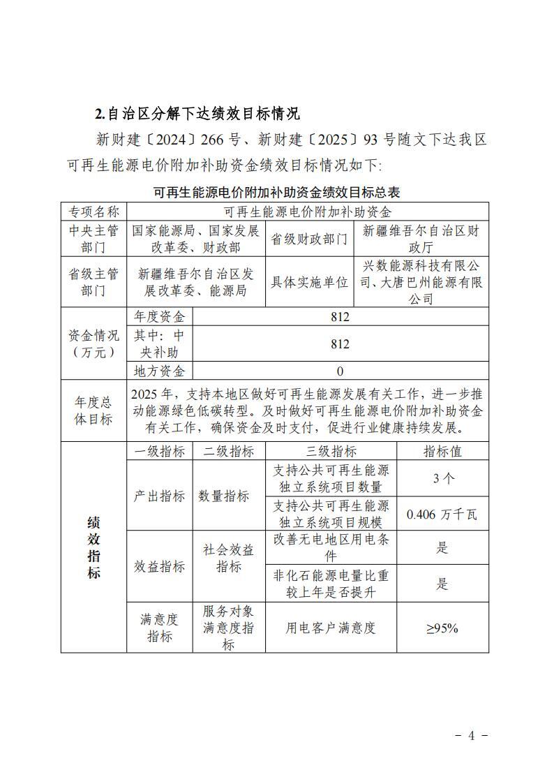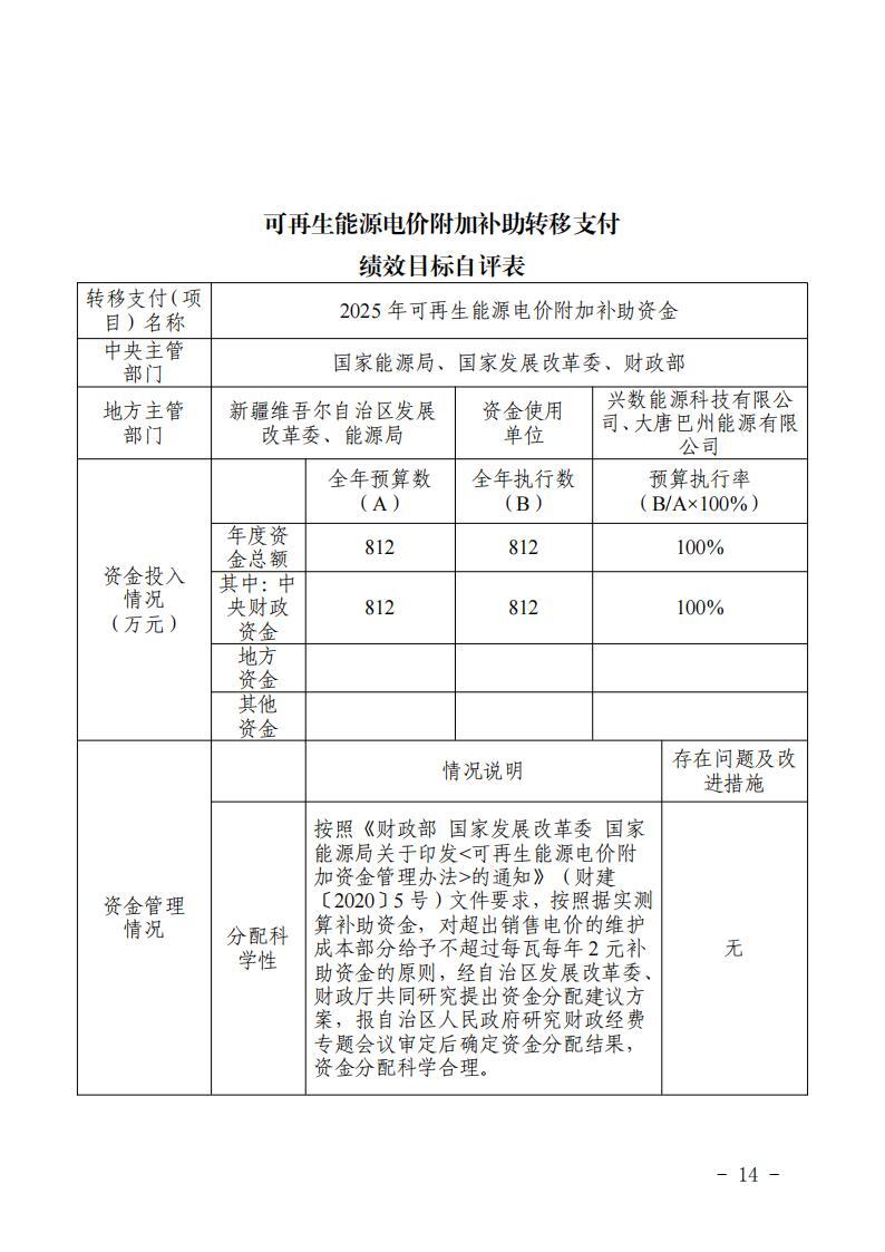 關(guān)于新疆維吾爾自治區(qū)可再生能源電價(jià)附加 補(bǔ)助資金中央轉(zhuǎn)移支付2025年度績(jī)效自評(píng)報(bào)告的公告