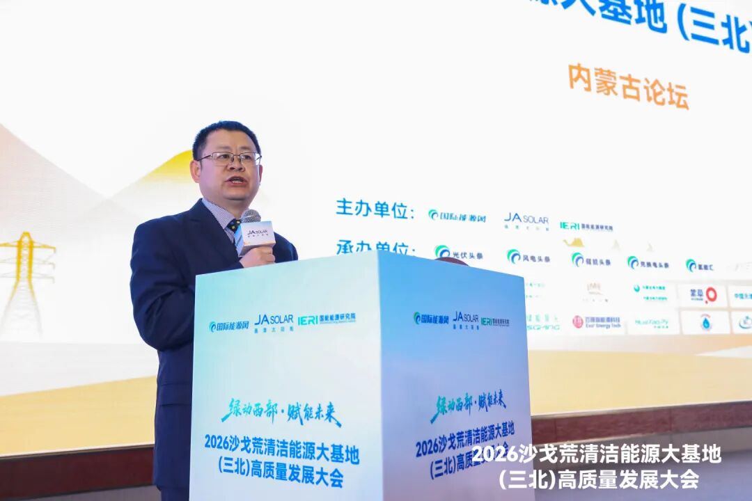 4月10日,以“綠動西部·賦能未來”為主題的“2026沙戈荒清潔能源大基地(三北)高質(zhì)量發(fā)展大會·內(nèi)蒙古論壇”在呼和浩特盛大召開。本次論壇由國際能源網(wǎng)、晶澳科技、國能能源研究院聯(lián)合主辦,匯聚政府主管部門、權威科研機構、行業(yè)龍頭企業(yè)、投資運營平臺等各界精英,聚焦三北沙戈荒清潔能源大基地建設核心議題,解碼政策導向、攻堅技術難題、分享建設運營經(jīng)驗、探索商業(yè)模式、搭建合作橋梁,為千萬千瓦級大基地高質(zhì)量建設注入強勁智慧動能。
