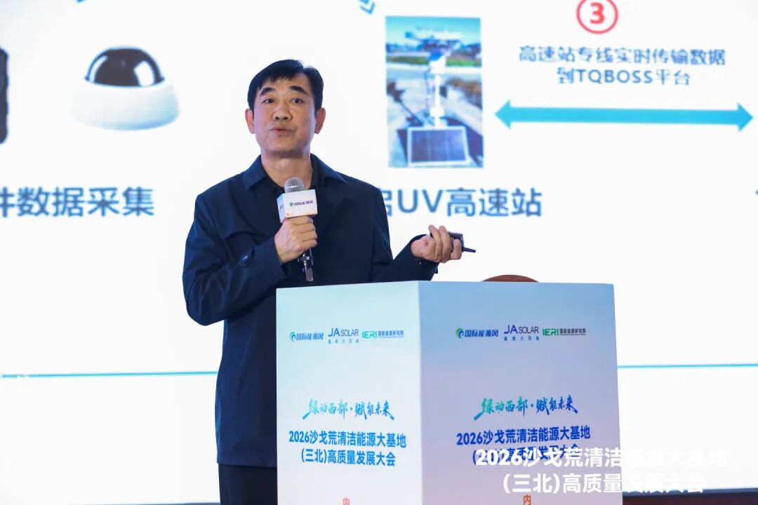 設備選型板塊針對沙戈荒極端環(huán)境下的技術適配痛點,邀請行業(yè)先鋒分享前沿設備技術與實戰(zhàn)經(jīng)驗,推動設備升級與技術創(chuàng)新。內(nèi)蒙古電力勘測設計院有限責任公司專業(yè)副總工程師宗鵬程,帶來《綠能戍邊·風光協(xié)同——內(nèi)蒙古沙戈荒千萬千瓦級風光同場新能源大基地規(guī)劃設計研究》,結合內(nèi)蒙古地域特點,為大型風光同場基地規(guī)劃提供可復制的實戰(zhàn)范本;晶澳太陽能科技股份有限公司中國解決方案部部長于紅偉,分享《晶澳漠藍組件如何重構沙戈荒光伏新范式》;株洲中車時代電氣股份有限公司綠能事業(yè)部解決方案總監(jiān)趙香桂,帶來《光儲并濟,沙海綠能——沙戈荒大基地高效并網(wǎng)解決方案的高價值實踐》,分享光儲協(xié)同技術在大基地并網(wǎng)中的應用路徑;百穰新能源科技(深圳)有限公司市場總監(jiān)鄒國海,聚焦新型二氧化碳儲能技術,分享了《大容量·長時·電網(wǎng)友好·無地域限制:新型二氧化碳儲能在沙戈荒清潔能源大基地的創(chuàng)新實踐與應用》;江蘇中信博新能源科技股份有限公司北部大區(qū)總經(jīng)理衛(wèi)效,帶來了《逐光馭沙,沙戈荒大基地光伏支架系統(tǒng)解決方案》,詳解光伏支架的技術優(yōu)勢與應用場景,為大基地光伏系統(tǒng)穩(wěn)定運行提供保障。