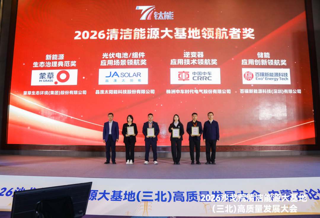 本次論壇期間,為表彰深耕沙戈荒清潔能源大基地建設(shè)、作出突出貢獻的先進單位,活動現(xiàn)場特別頒發(fā)“鈦能獎·2026清潔能源大基地領(lǐng)航獎”,獲獎名單正式公布,將整場論壇推向高潮。