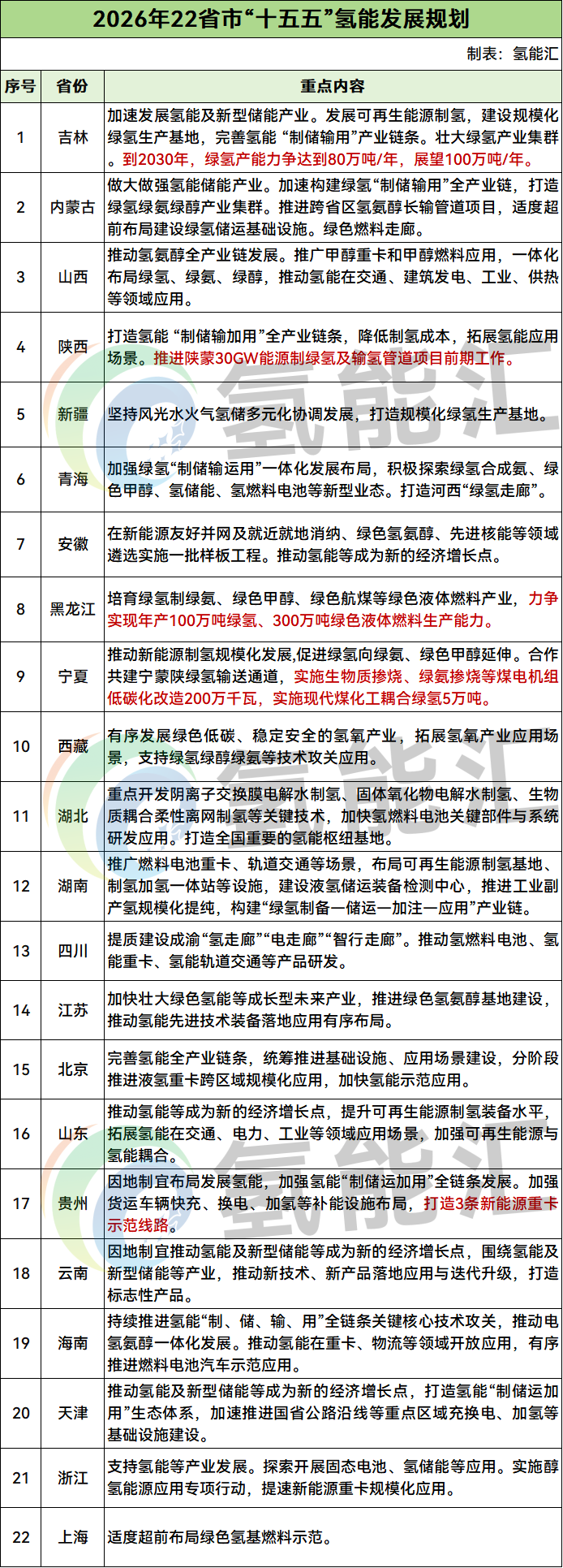 22省“十五五”氫能規(guī)劃全梳理,份量很重!